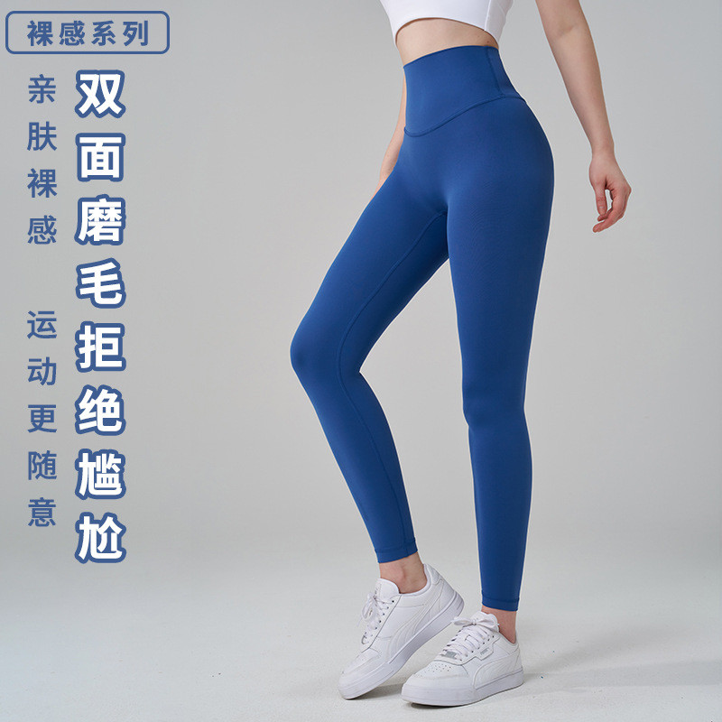 ヌード感覚の新しい両面研磨3点パンツヨガパンツ女性用ヨーロッパとアメリカのハイウエストヒップアップピーチスポーツショーツフィットネスパンツ