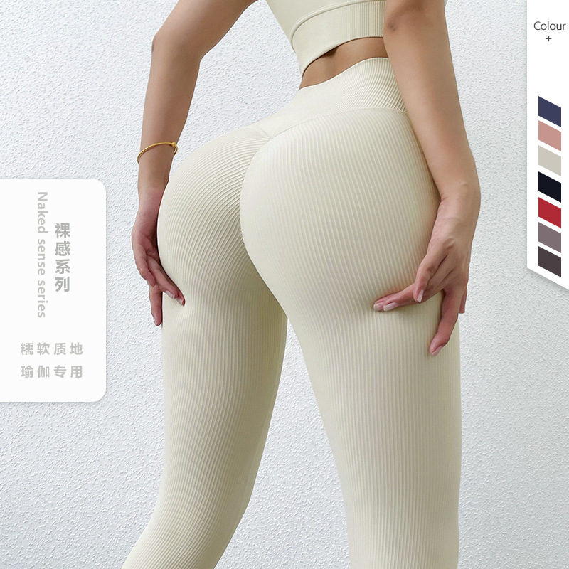 2022新型のリブの裸感は腹の蜜桃の尻のヨガのズボンの女性の腰の蜜桃の尻の運動のフィットネスのタイツを収めます。