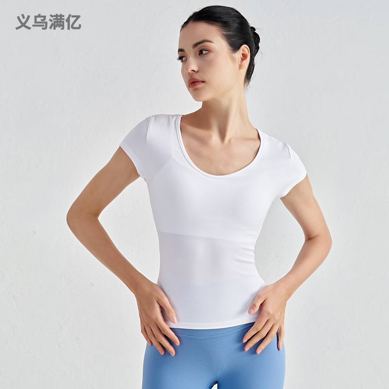 ヨガの服の女性のガードルと胸のパッドの運動の上着の半袖のランニングはやせている純色のベストの新型のフィットネスの服を現します。