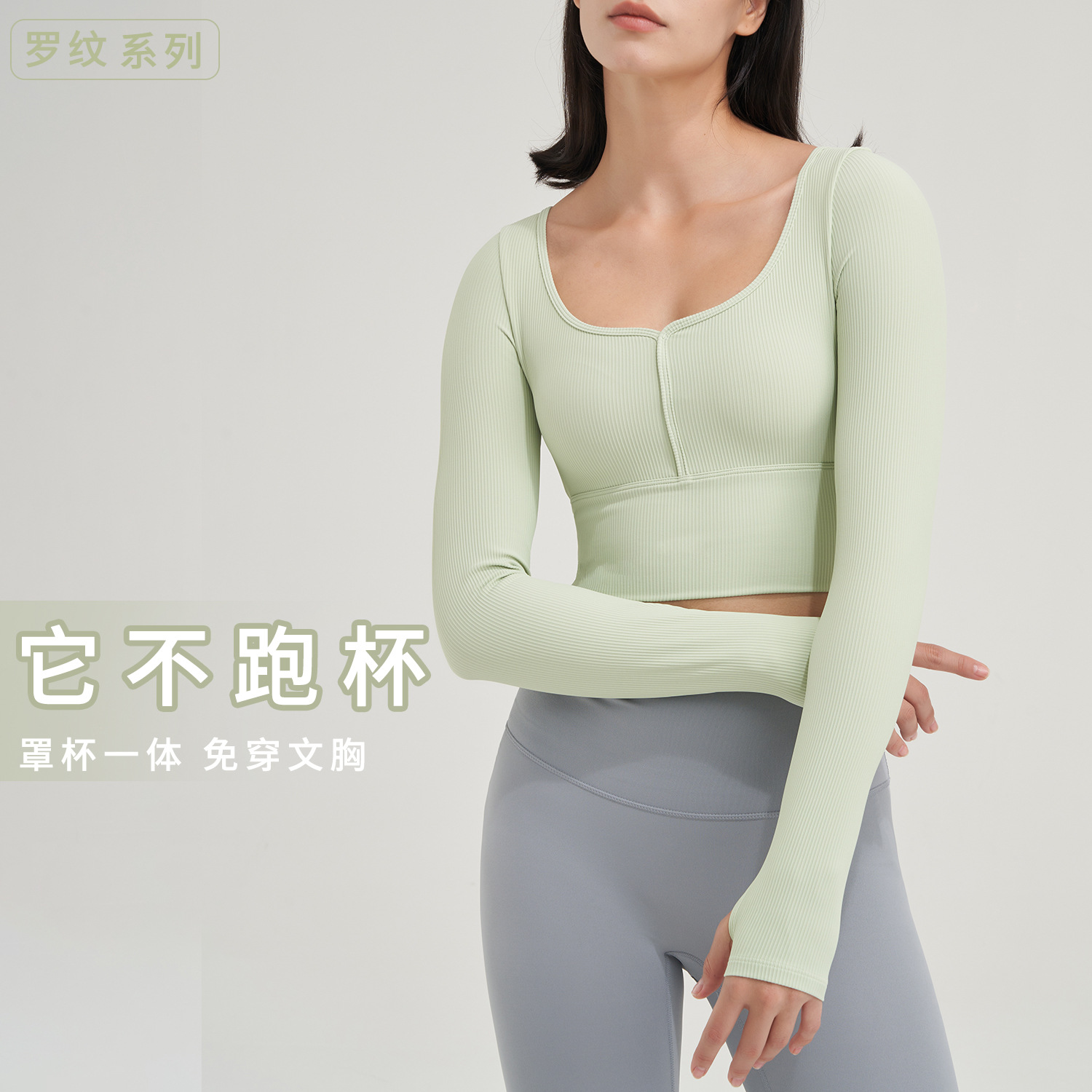 秋冬新固定カップ長袖ヨガ服ねじスポーツ上着女子大uネックガードル指サックトレーニング服
