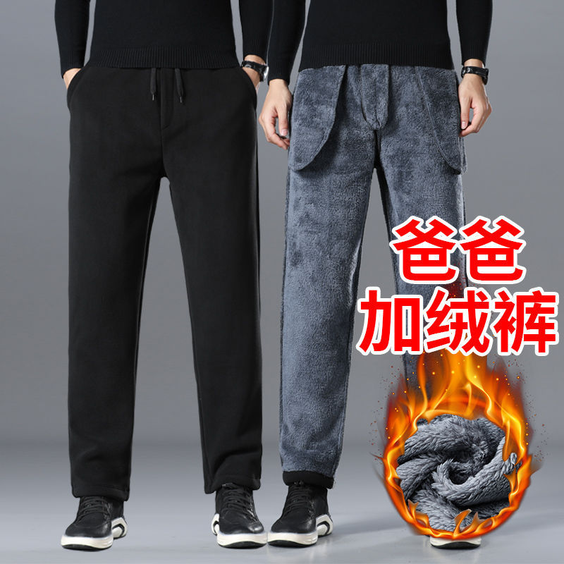 現物新型中高年男性春秋カジュアルパンツ高腰直筒長ズボン秋冬父加毛保温綿ズボン
