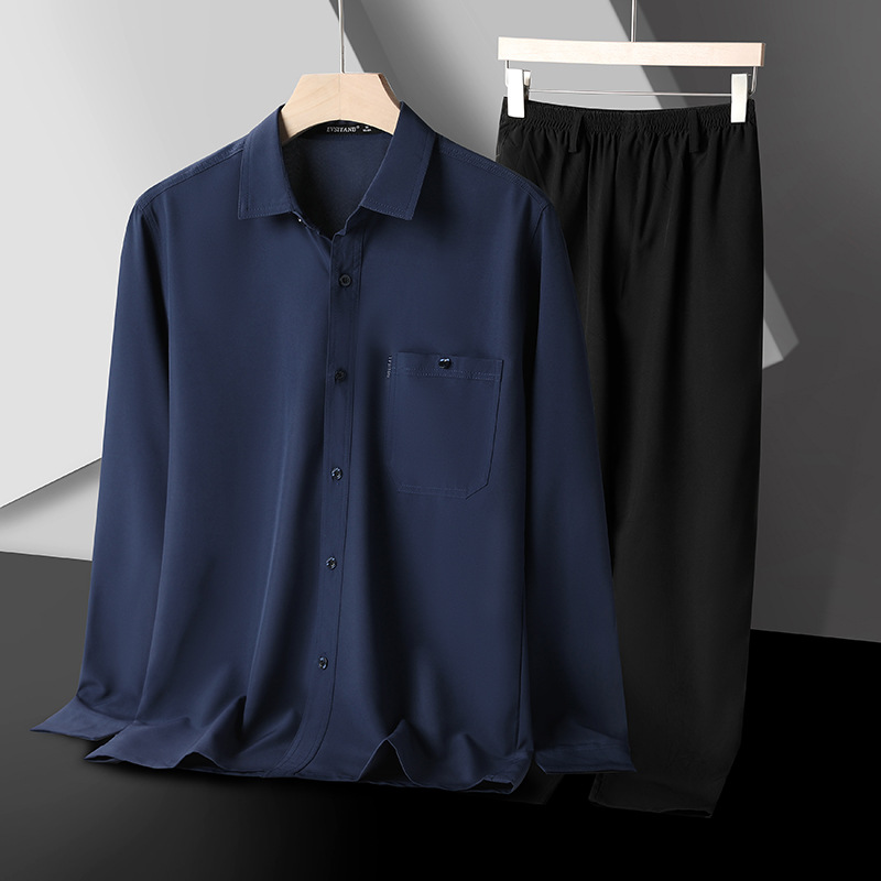父の春の服のシャツの中年の2つのセットの春と秋の薄い長袖のシャツの中高年の夏服の服