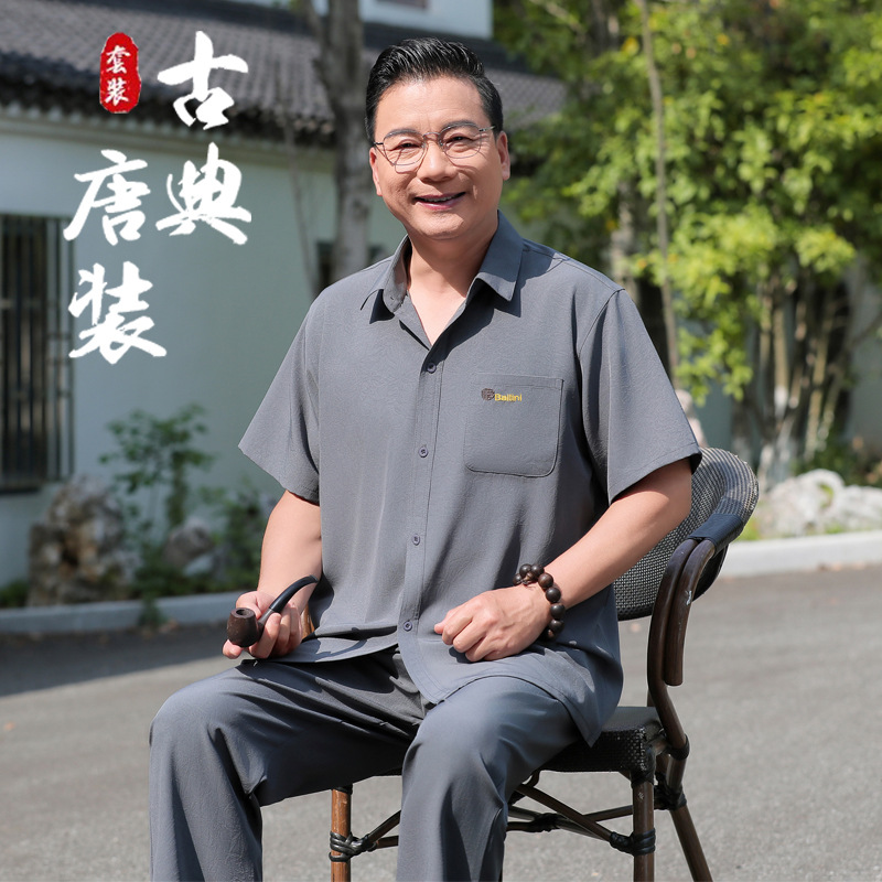 お父さん夏シャツ2点セットおじいちゃんアイスシルク速乾服中高年夏薄手半袖紳士シャツ