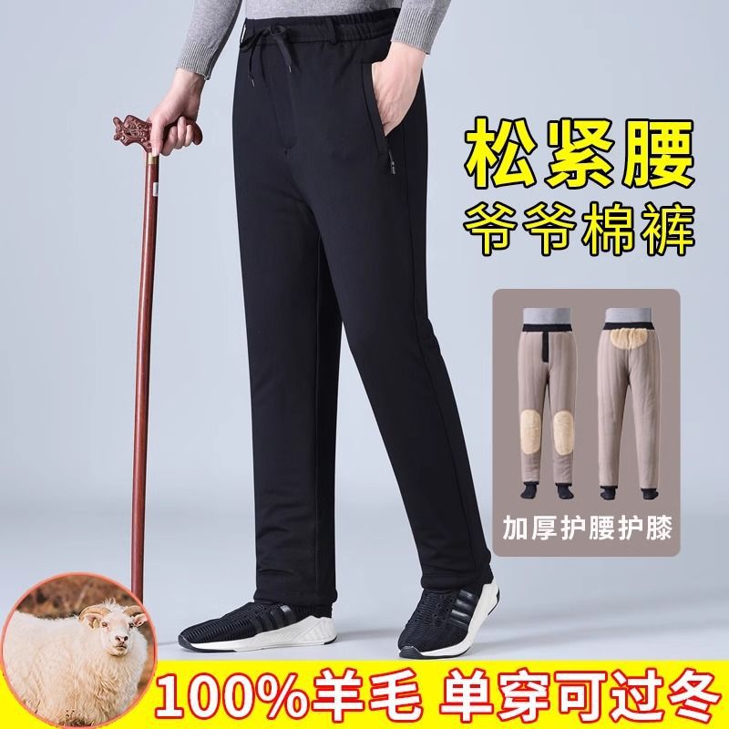 おじいちゃんのウール綿パンツ、厚くて暖かいカジュアルパンツ、高齢者用ベルベットパンツ、男性用秋冬70歳高齢者冬服
