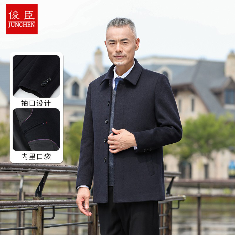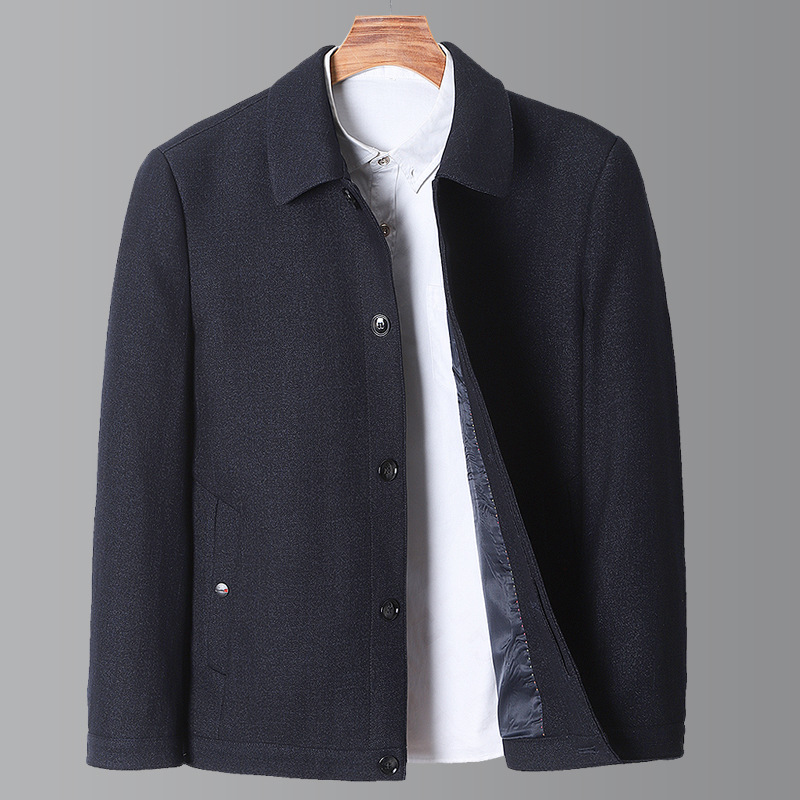 男性用の短いカシミヤの毛は、カジュアルなビジネスウールの襟付きジャケットの高齢者の秋冬のゆったりとした快適さです。