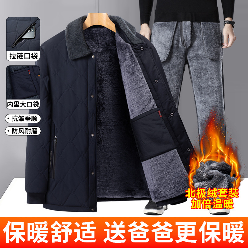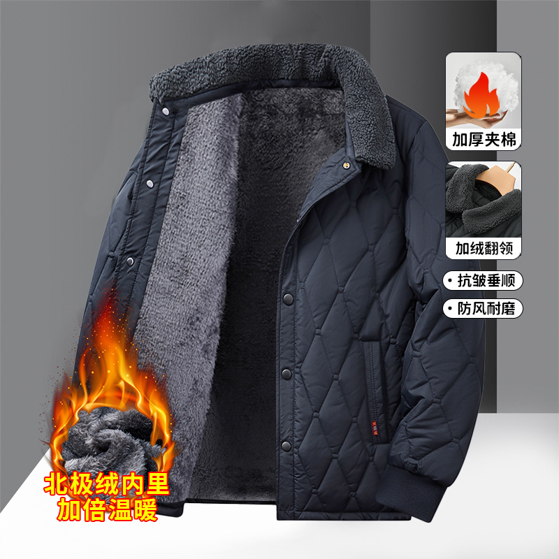 お父さんの冬用綿入れジャケット、中高年男性用綿入れコート、おじいちゃん用裏起毛綿入れジャケット、大きいサイズのデザイン