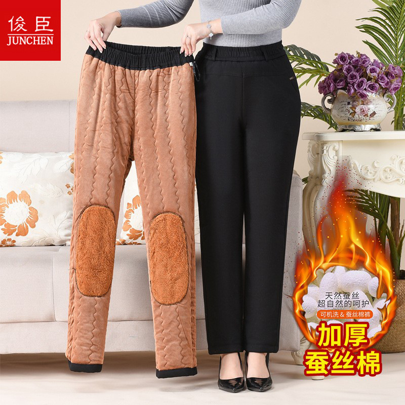 お母さんのズボンのシルクの綿のズボンとベルベットのゆったりした秋冬のストレートサイズの中高年のズボンの外は厚くて暖かいです。