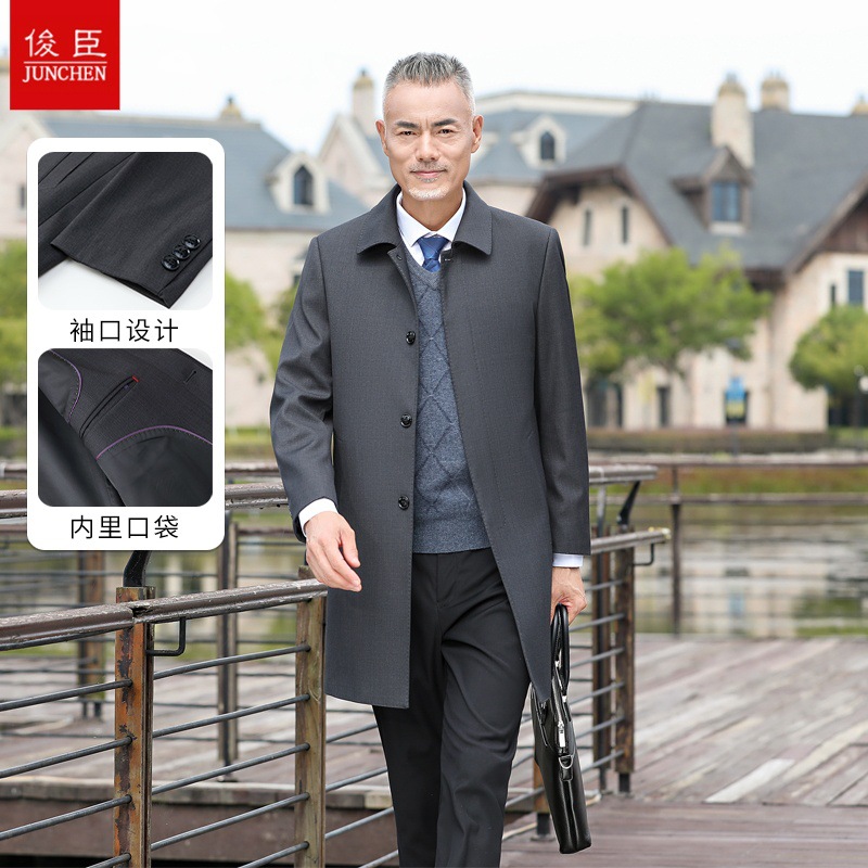 哔叽风衣春秋季款中老年男士修身防风长款商务休闲外套爸爸装大衣