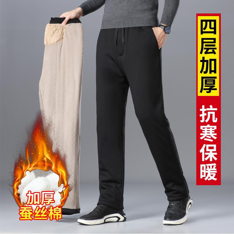 お父さんの綿のズボンの外は冬のベルベットのズボンの東北の保温を着て防風のズボンの中で高齢者の男性のカジュアルなズボンを厚くします。