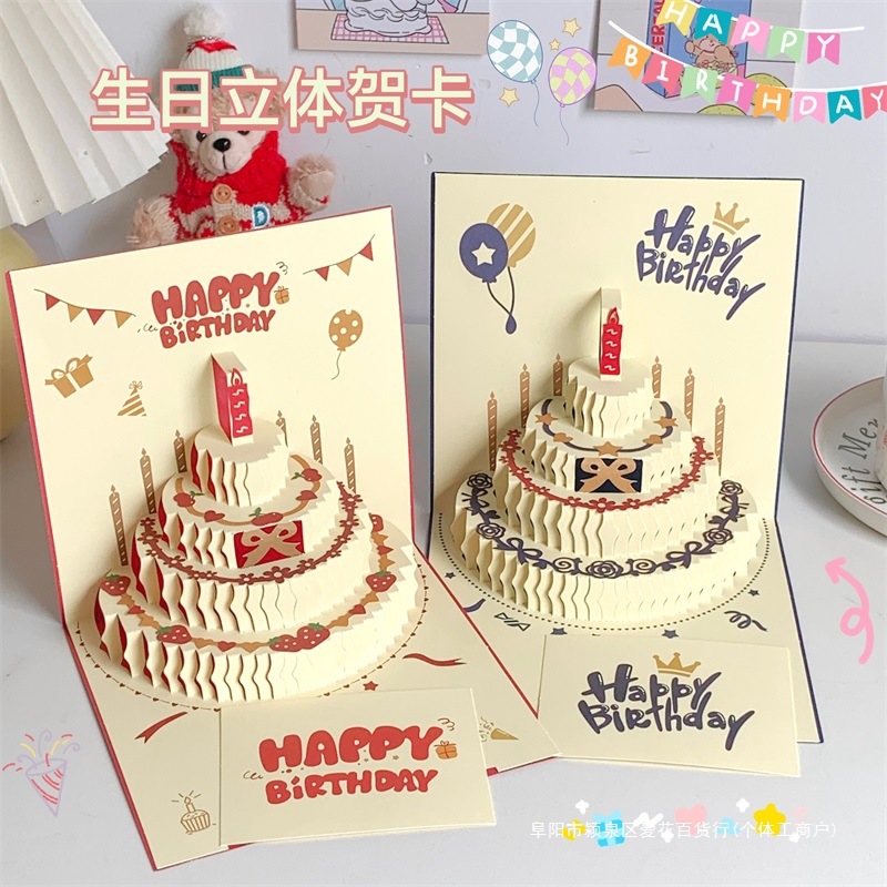 クリエイティブ箔押し立体誕生日カード感発光有声カップルかわいい誕生日プレゼント