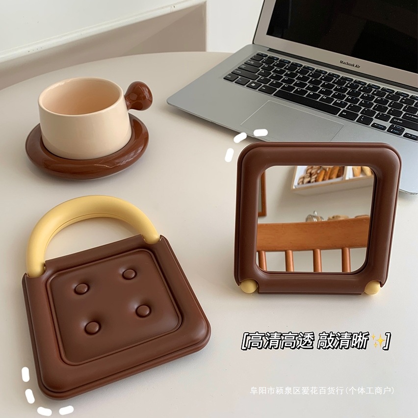創意チョコレートビスケット折り畳み化粧鏡ins多機能携帯学生寮のデスクトップは化粧鏡を立てることができます。