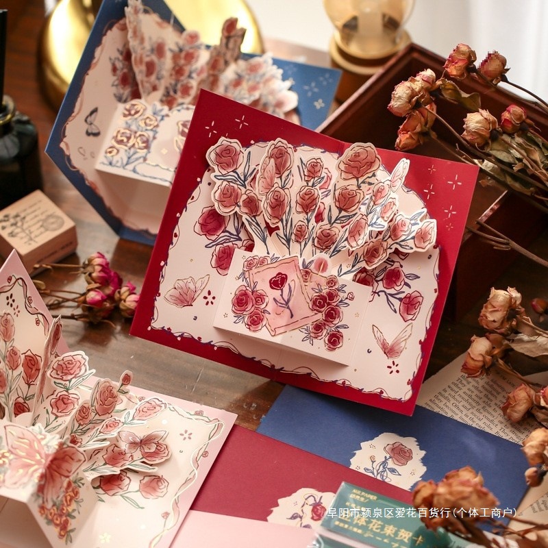 バラの花3d立体グリーティングカード520クリエイティブ箔押し誕生日バレンタインデープレゼント七夕カードロマンチックins