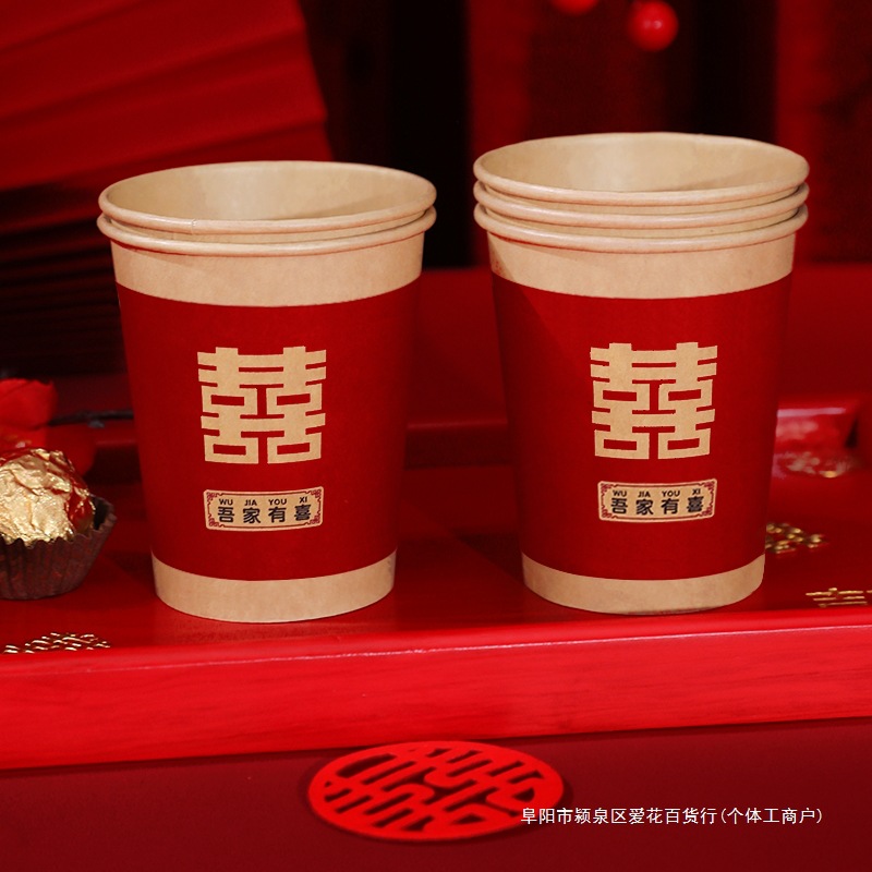 使い捨て紙コップ結婚祝い用品大全結婚式厚手喜字喜杯赤い家庭用コップお祝いコップ