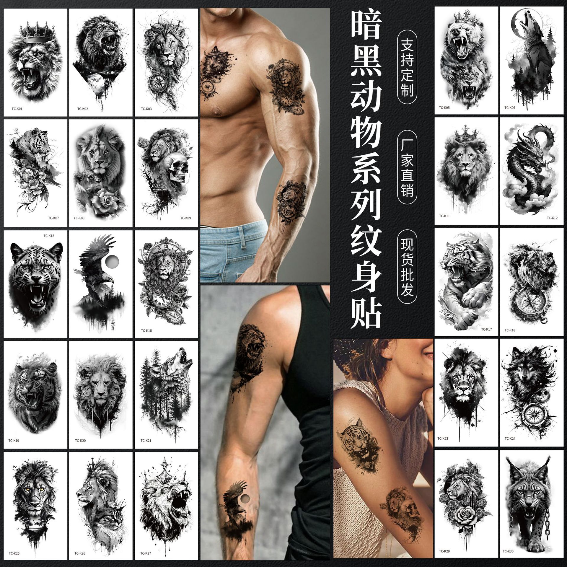 クロスボーダー新しいフラワーアームタトゥーステッカーハイエンドハーフアームパーソナライズされたトレンディな男性のタトゥータイガーライオン動物タトゥーステッカー