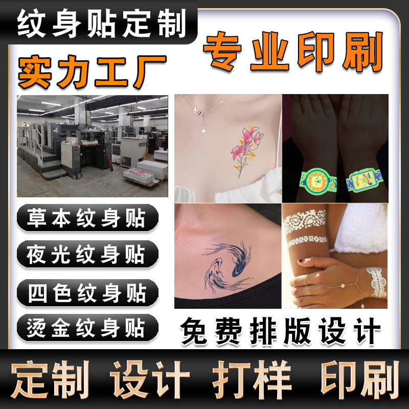 カスタマイズされたタトゥーステッカー、カスタマイズされた小さな新鮮な蛍光ハーブジュースグリッター発光ホットスタンピングクロスボーダータトゥーステッカー
