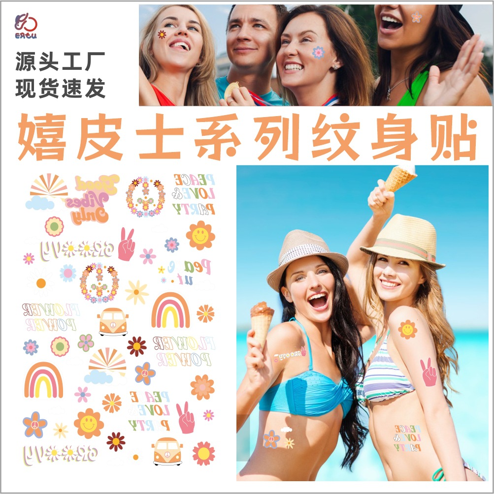 越境新型ヒッピーの紋章はhippieピースの防水愛と平和の男女の集まりのパーティーの顔を貼ります。