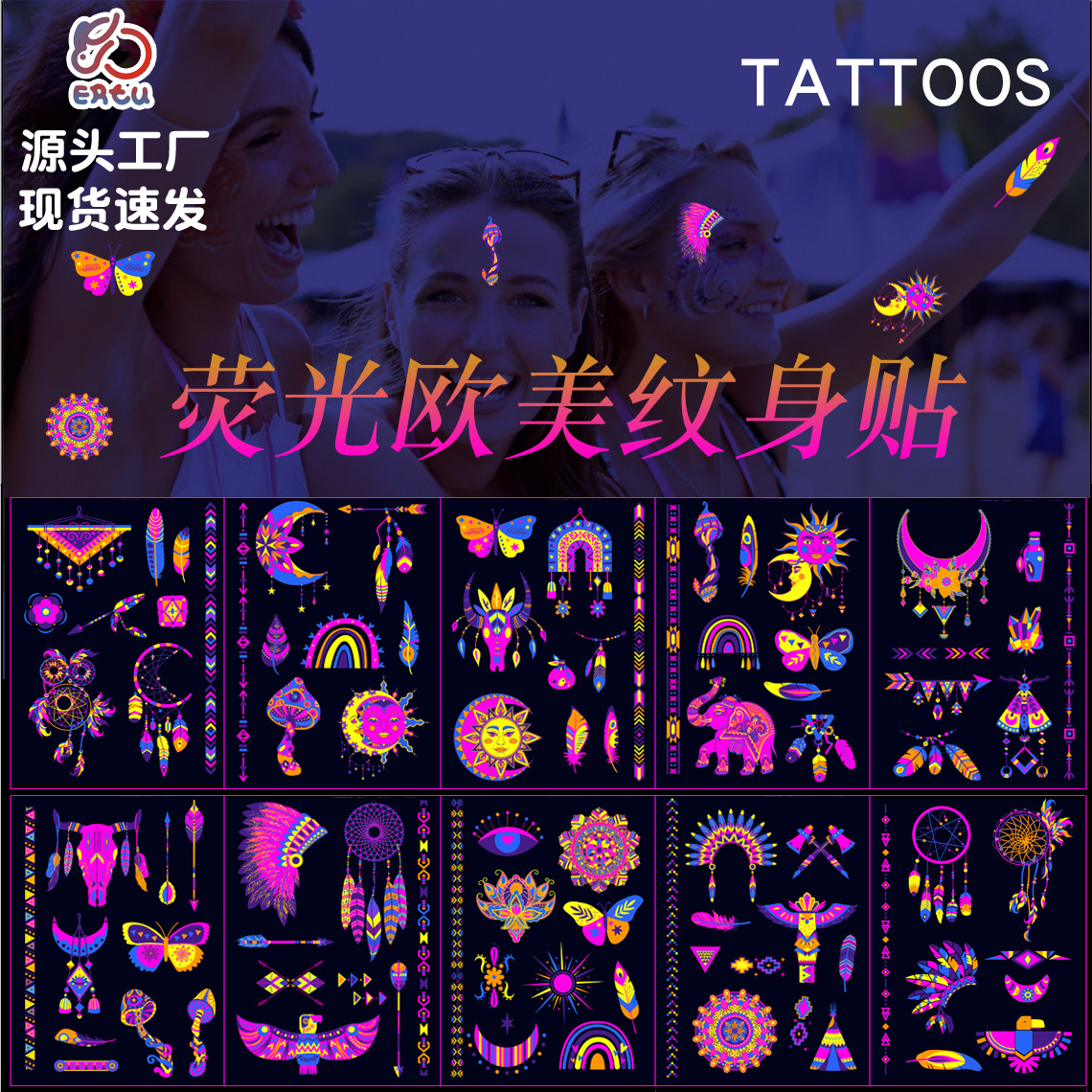 よく売れている欧米の新型の創意蛍光刺青は夜店のバーの音楽祭のパーティーの顔の腕の刺青を貼って貼ります。