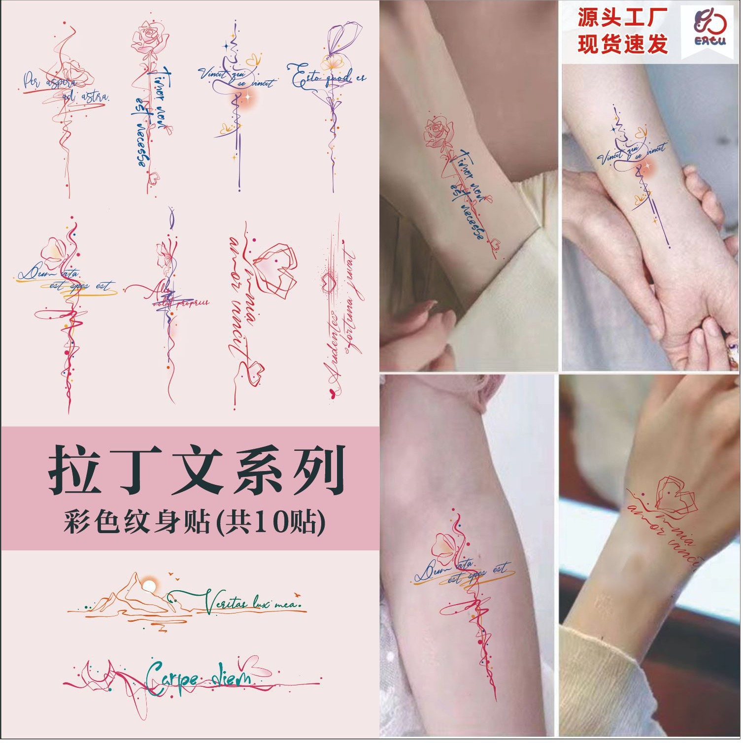 クロスボーダー热い贩売ラテン语タトゥーステッカー高级感ins风セクシーな女性の英语の腕の锁の腕のリングのボディステッカー