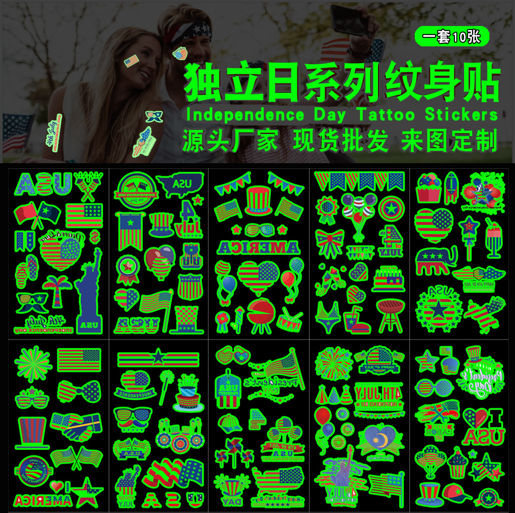 国境を越えた新しい夜光独立日タトゥー貼りアメリカ国旗防水パーティーパーティーパレード祭りパーティーシール