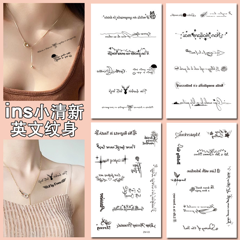 クロスボーダーの小清新な励ましの志の英語のアルファベットの紋章は高級感のinsのセクシーな鎖骨の花の腕のネットの赤い紋章を貼って貼ります。