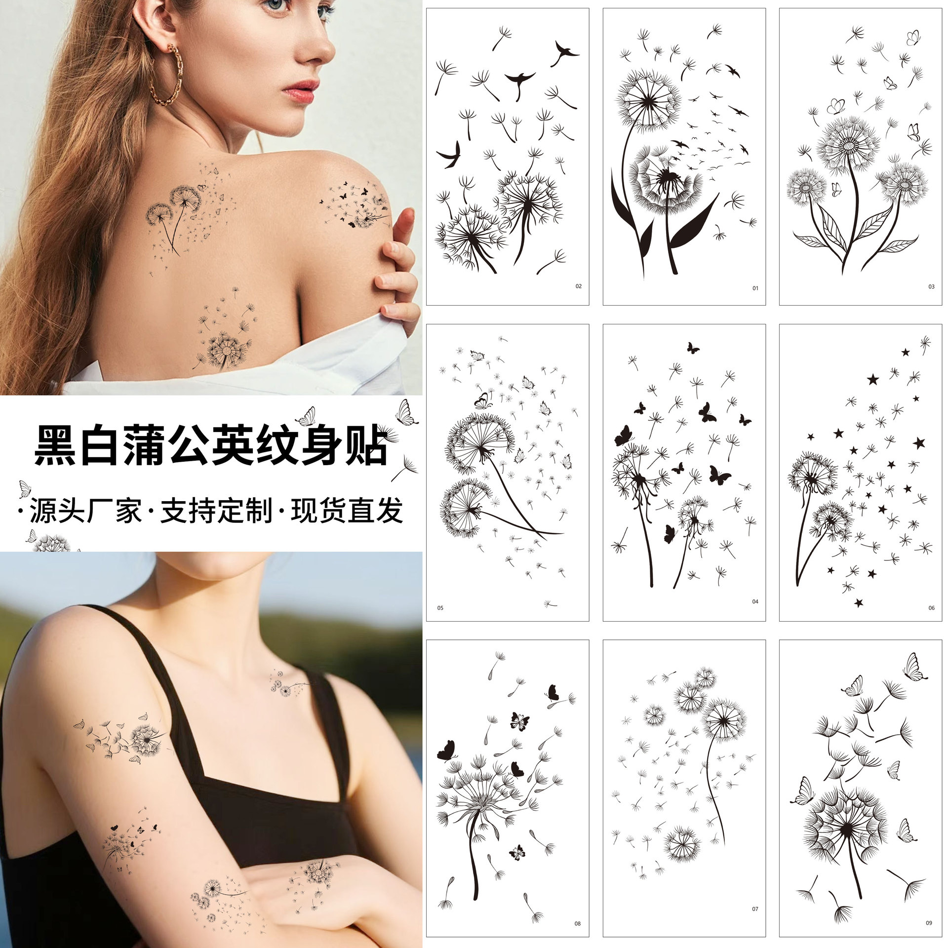 国境を越えた新型白黒タンポポの紋章貼り高級感ins花セクシーな女性腕鎖骨タトゥーシール