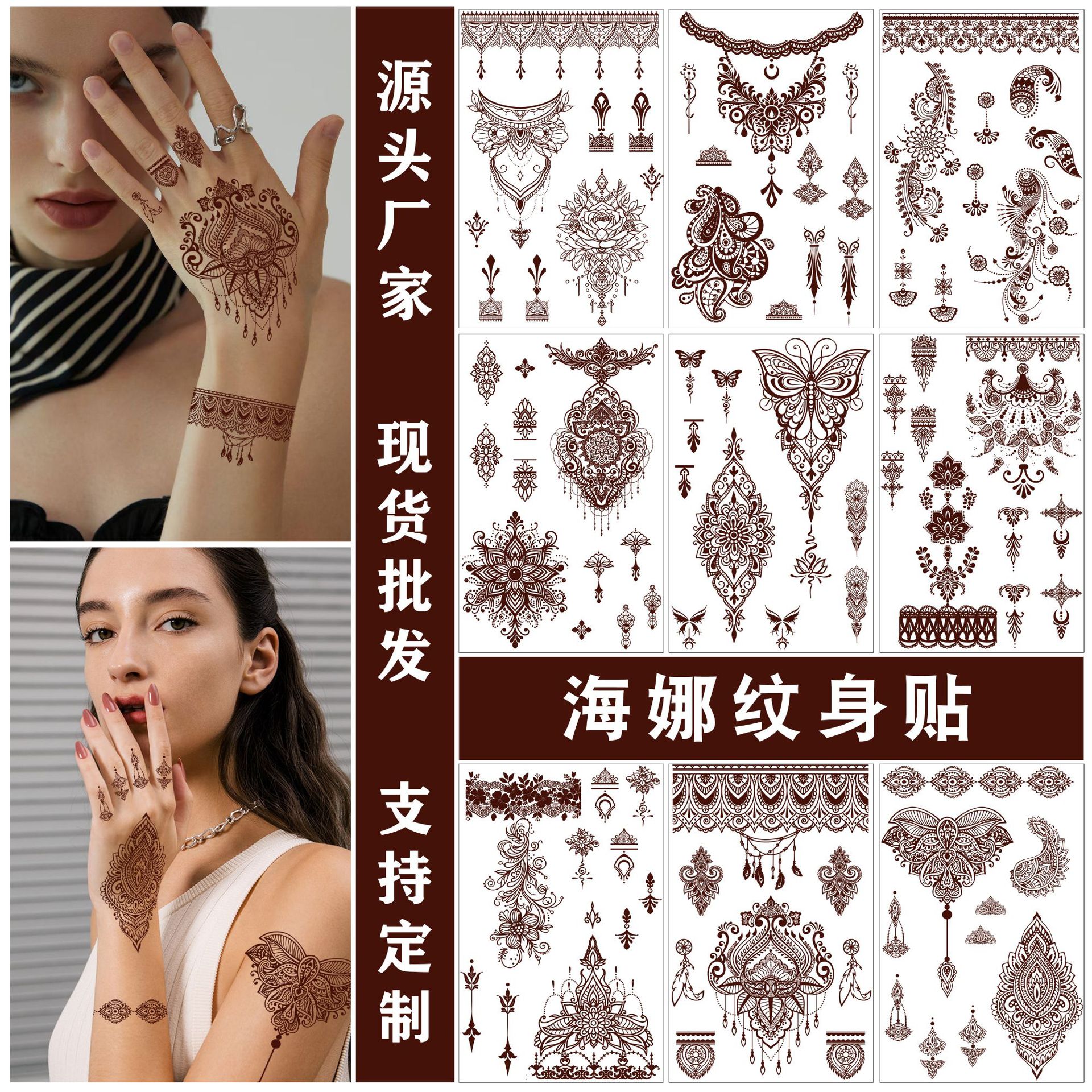 ヨーロッパとアメリカのクロスボーダーヘナタトゥーステッカー、高級曼荼羅フラワーハンドステッカー、インドのハンナレースタトゥーステッカー