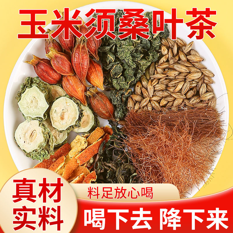 三降茶】トウモロコシのひげ桑葉茶クチナシのニガウリの陳皮の大麦の組み合わせの花茶の源の工場は注文して注文します。