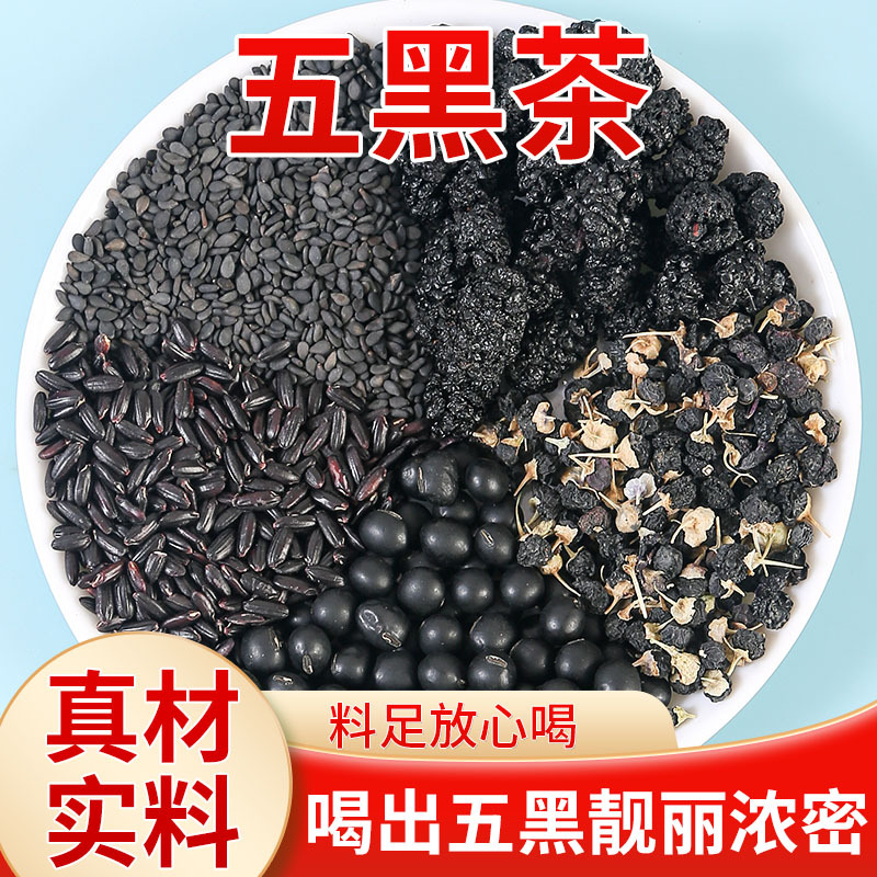 悦発茶】五黒茶養生悦発黒胡麻黒クコ黒豆黒米黒桑実養生茶夜更かし男