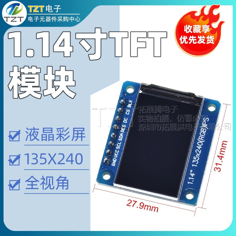 1.14inchIPS フルビュー TFT ディスプレイ LCD カラースクリーンモジュール SPI シリアルポート 135x240 タッチスクリーン
