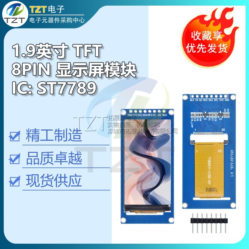 1.9インチTFT液晶ディスプレイ170 × 320フルカラー駆動ST7789インターフェースSPI 8ピン