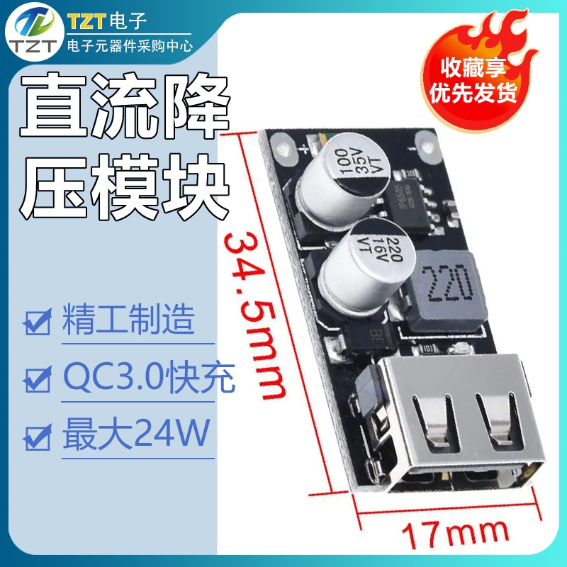 直流降圧モジュール12v24v回転qc3.0急速充電シングルusb携帯電話充電板はアップル華為fcpをサポートしている