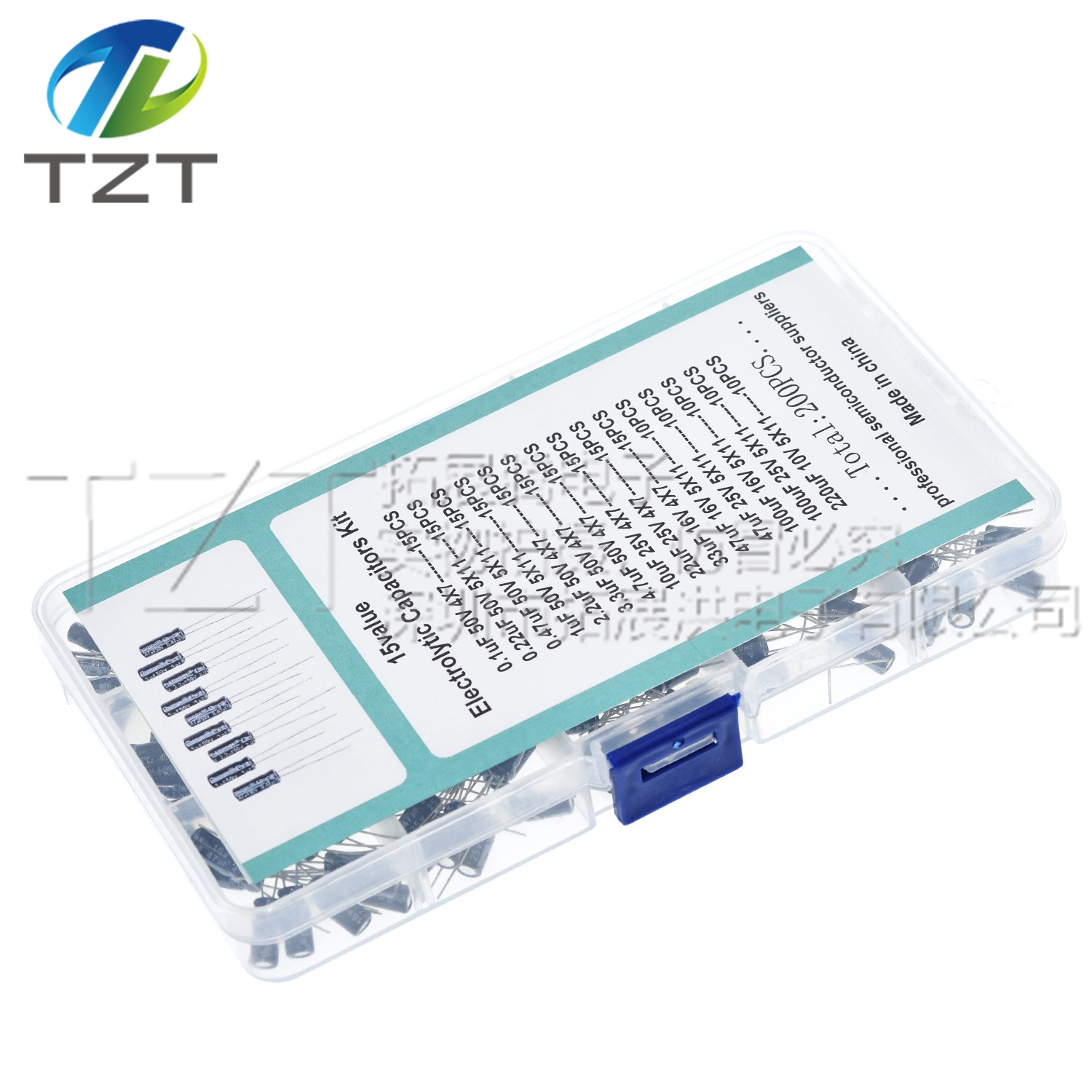 200pcs直挿し電解コンデンサ箱セット0.1uf-220uf 10v-50v 15仕様