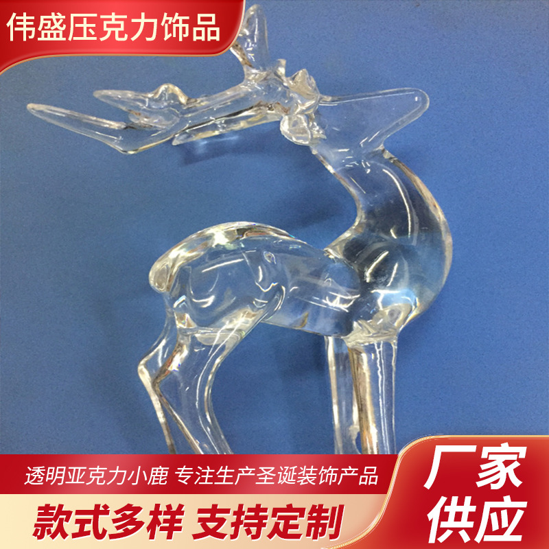 13センチ透明アクリル小鹿ヘラジカクリスマスアクセサリー鹿ストラップ工芸品鹿置物