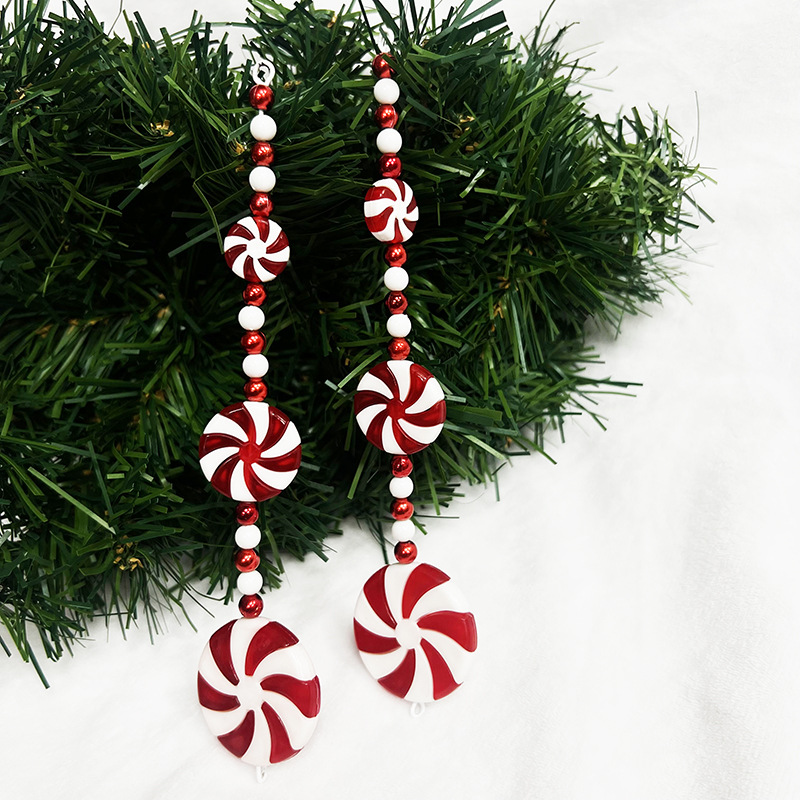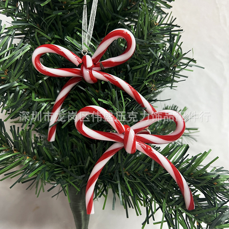 クロスボーダー新品クリスマスキャンディストラップステッキペンダントプラスチック人工ミントキャンディー2色キャンディストラップ装飾品