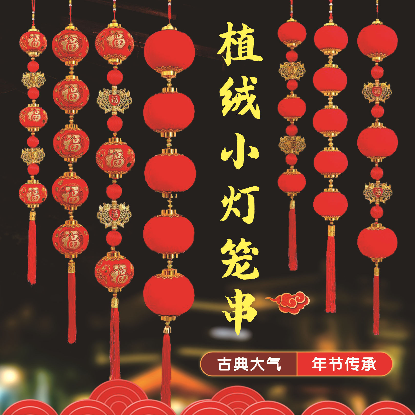 新年の春節のストラップの装飾の大きい赤い植毛の灯籠の室内のシーンは提灯のストラップの小さい提灯を配置して飾ります。
