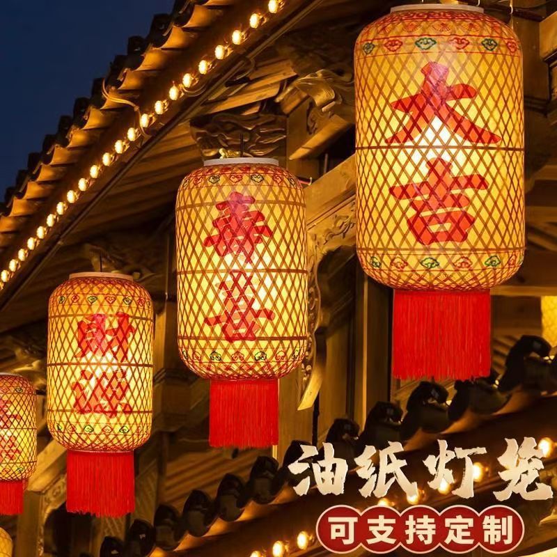 手織り民俗竹編提灯広告印字伝統火鍋店大ランクホテル装飾古風提灯