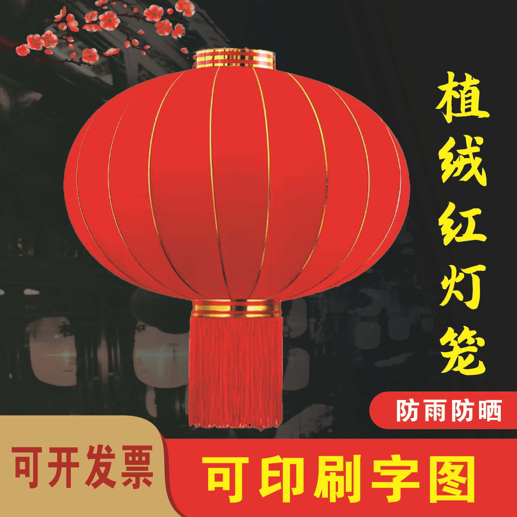 ロングロッド植毛箔押し提灯歓度佳節中国夢大紅ベルベット提灯屋外玄関広告提灯