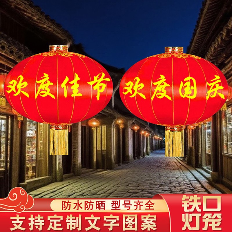 特大号大紅提灯屋外防水鉄口提灯旧正月観光地区ホテル装飾鉄口絹織物ベルベットランプ