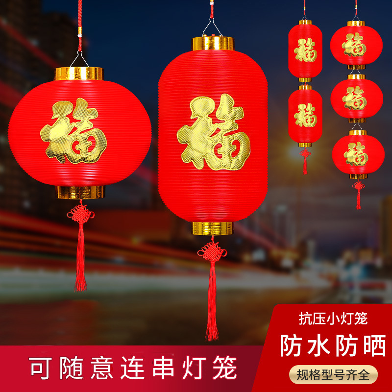 旧正月福字大紅提灯LED長屋外防水冬瓜提灯円PVCプラスチック連列小提灯吊り飾り