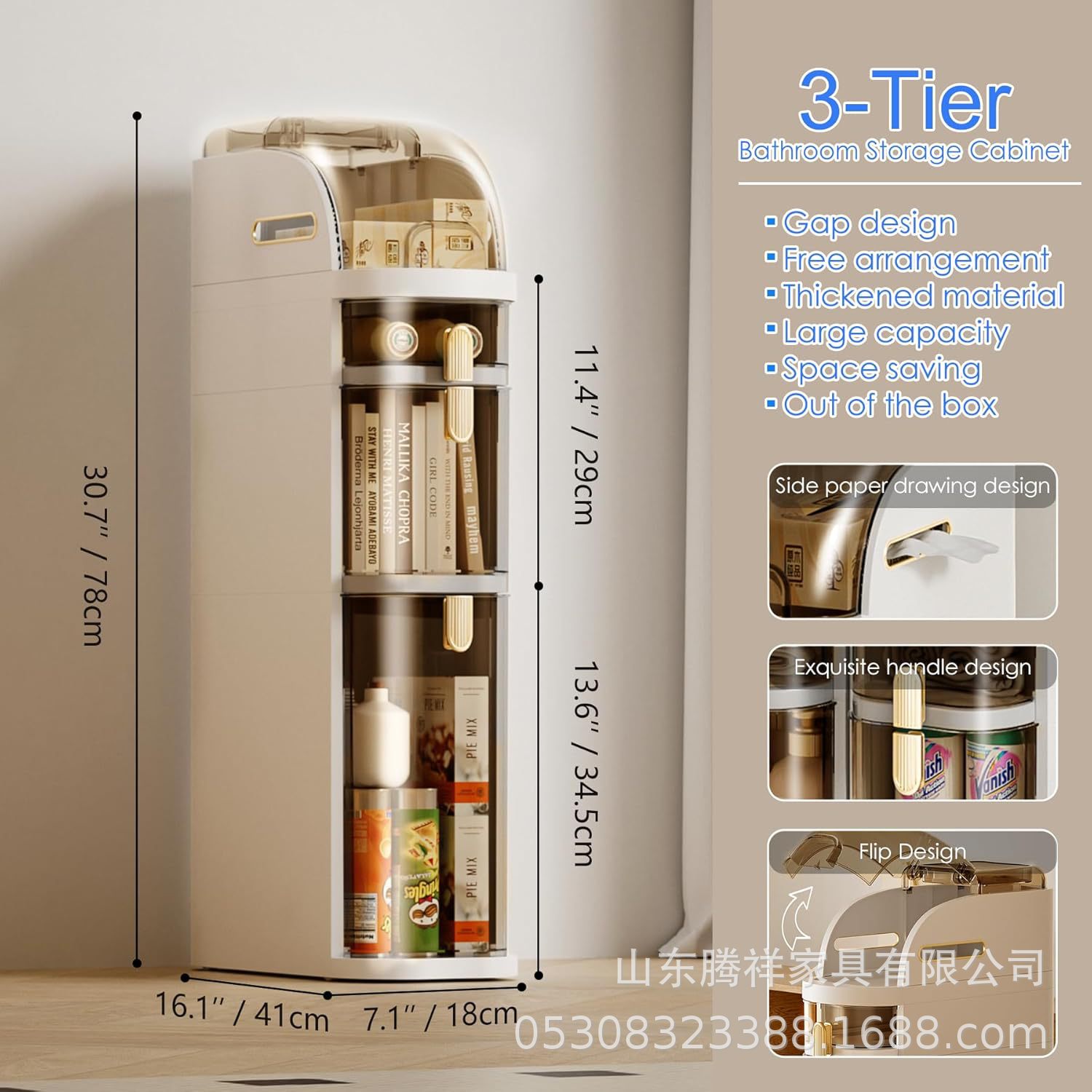 隙間収納キャビネット、浴室収納ラック、浴室引き出しタイプ、狭い隙間、設置不要、床置き多層収納ラック、軽い高級感