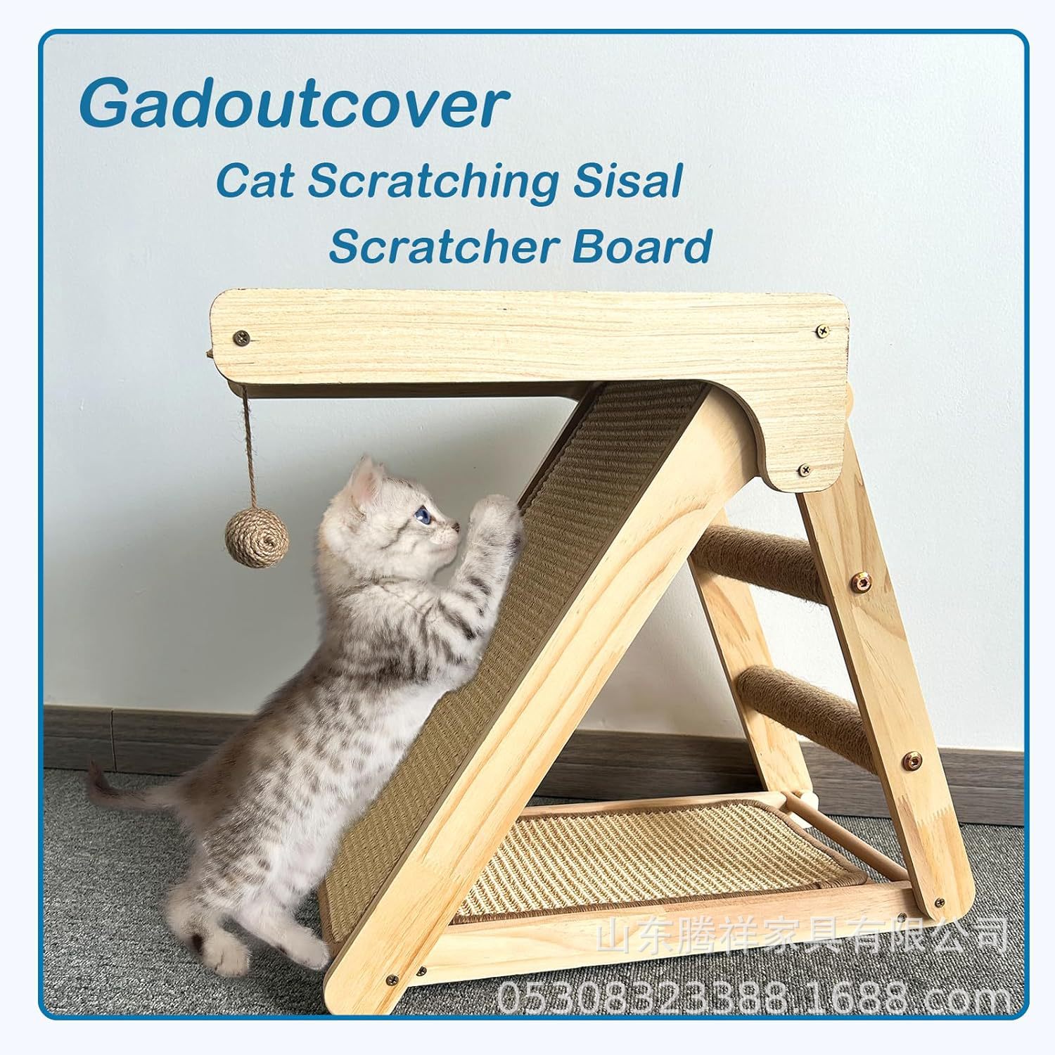 木製猫スクラッチボード垂直三角形無垢材耐摩耗性麻ロープ特大猫爪ボード抗ソファ猫のおもちゃ