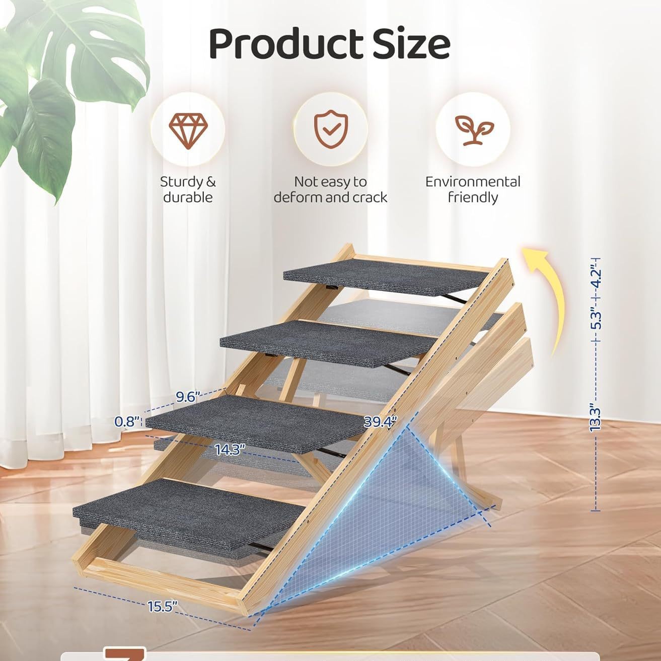 木製ペットはしご、便利なスロープ、犬用補助階段、折りたたみ式多層滑り止め猫と犬用スロープはしご