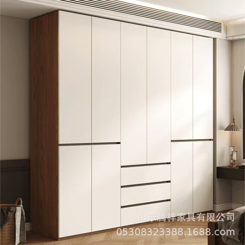 無垢材ワードローブ両開きドアモダンシンプルホームベッドルーム小さなアパートワードローブ収納キャビネット卸売メーカー直接供給