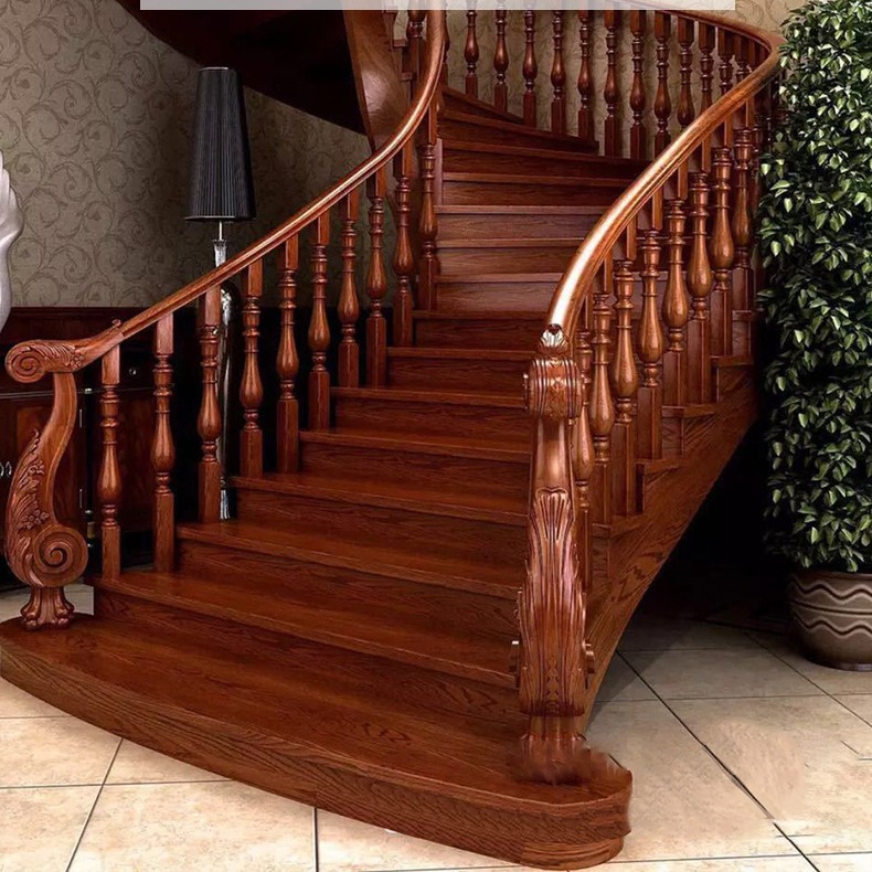 実木階段手すり実木紅ゴム木など実木階段柱手すりエルボカスタマイズ