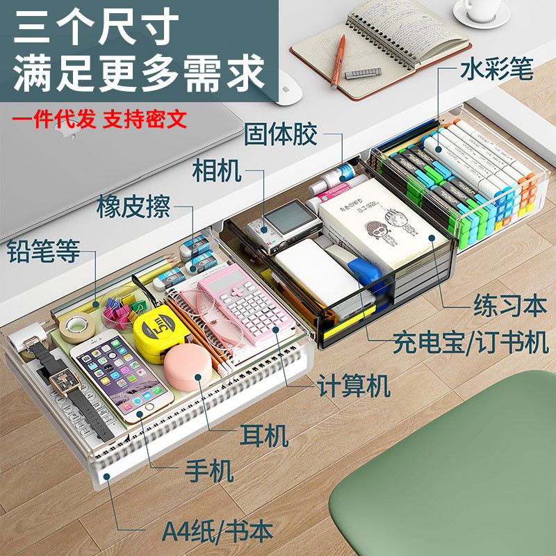 机の下の引き出しは穴を開けないでステルス式のデスクトップの引き出し式の収納箱の大容量は棒があって神器を詰めます。