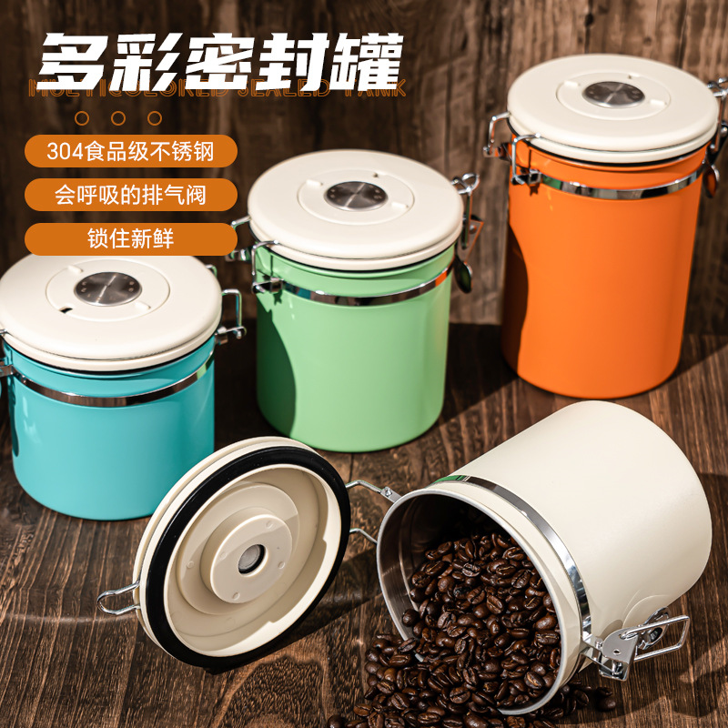 コーヒー缶304ステンレス密封缶蓋付き貯蔵缶子粉ミルク缶茶乾燥果コーヒー豆保存缶