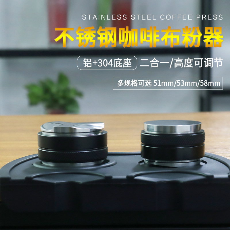 コーヒー布粉器ステンレス二頭二合一調節可能な圧粉器イタリア式51/53/58mm圧粉器