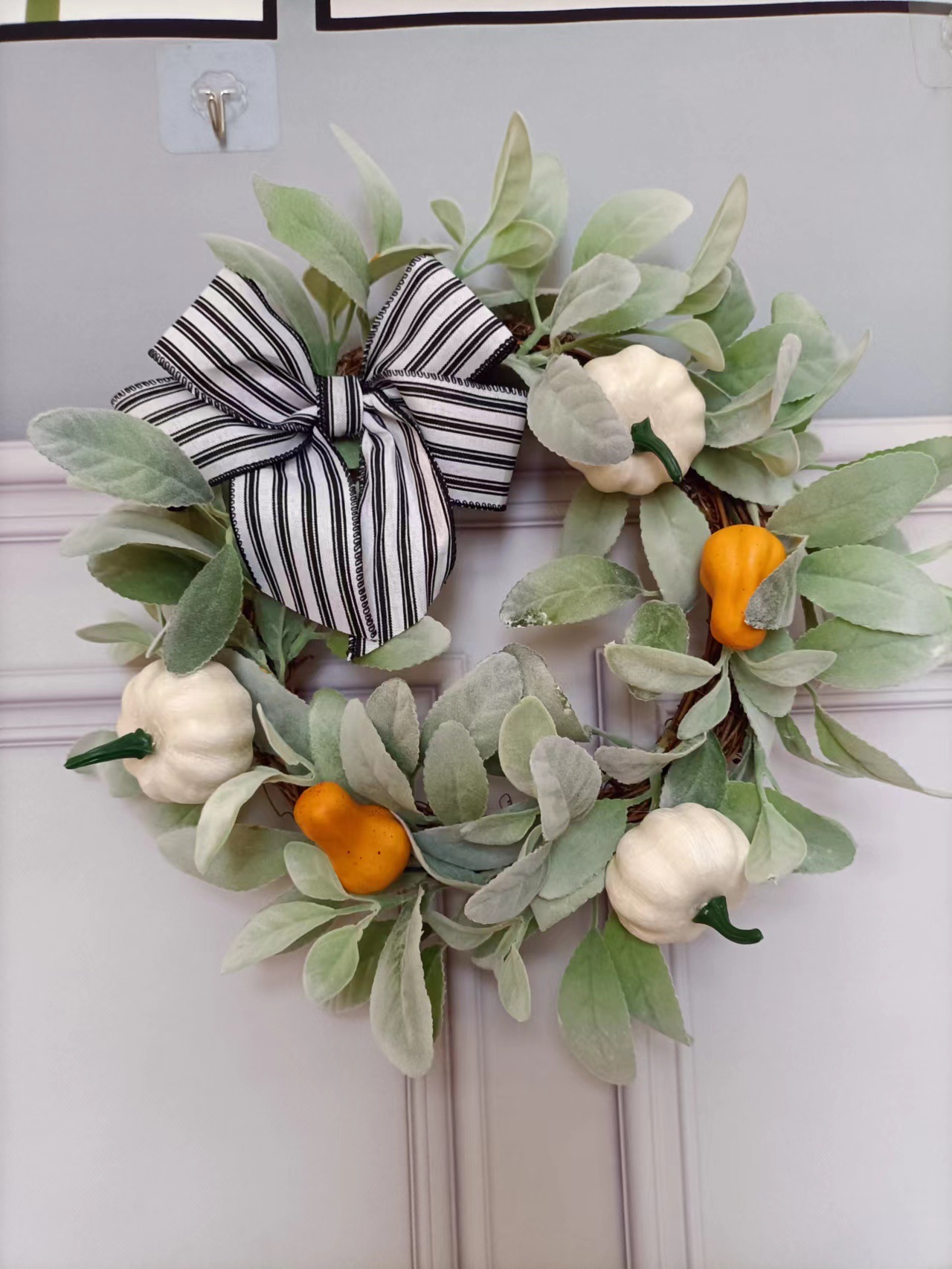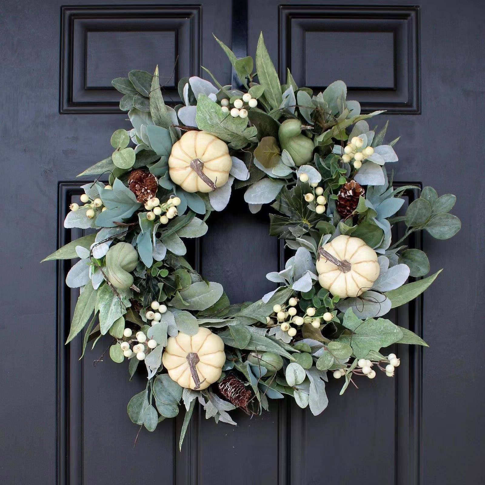 花浅笑白かぼちゃユーカリ葉ウサギ耳葉花輪ホームリビング装飾ストラップアマゾン新作秋