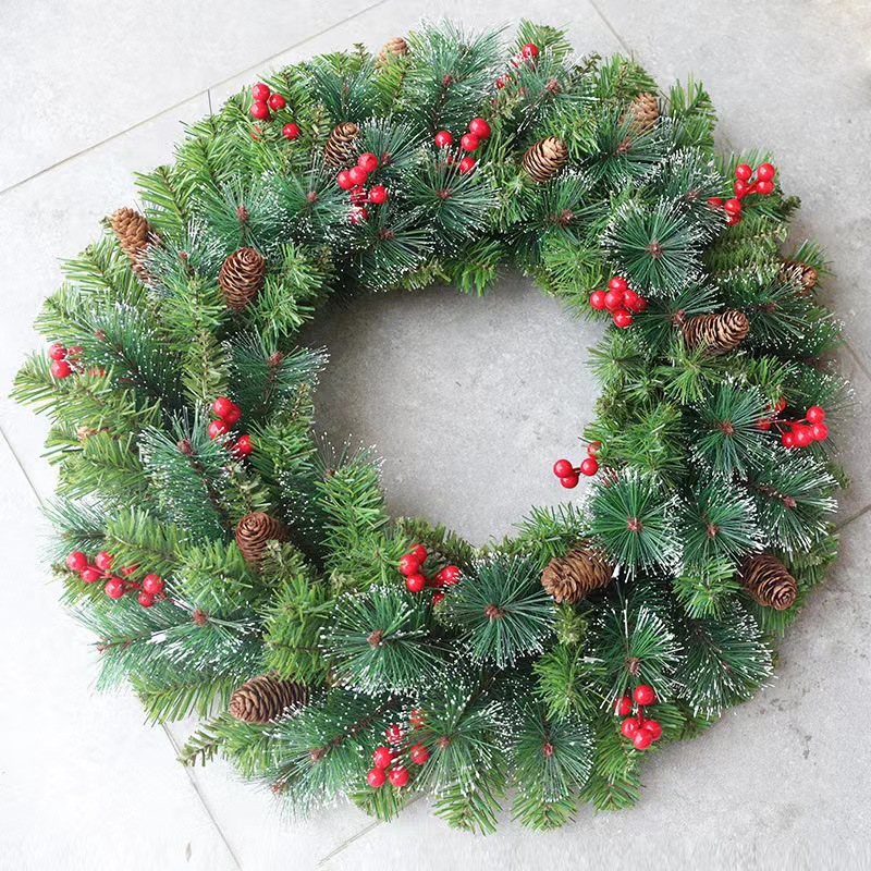 花浅笑新商品アメリカ紅果花輪松針松果クリスマス装飾花輪クリスマス帯灯壁掛け