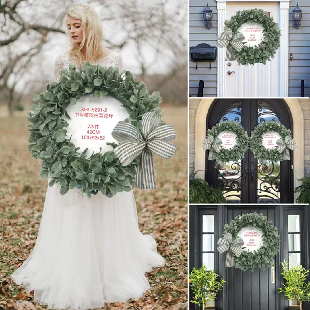 花浅笑新商品花輪尤加利木の葉植物夏春白霜アメリカ田園家庭蝶結び飾り